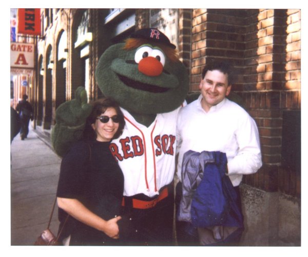 The two of us somewhere fancy. Fenway Park, with 'The Green Monster'. Back to home page.